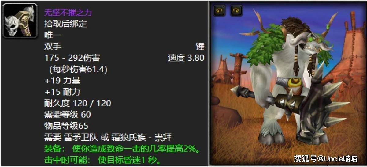 提到60年代的PVP神器,“猪头锤”绝对是绕不开的名字。奥特兰克山谷声望崇拜才能兑换的双手锤,不仅有着辨识度拉满的黑色猪头造型,更曾凭借“击中后概率击退目标”的神级特效,在战场掀起腥风血雨。想象一下,当你的大战神冲锋敌方布甲,一锤下去直接把人击飞,那场面简直是“物理劝退”的恐怖如斯体现!