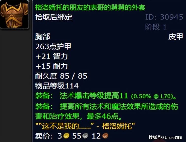 这件装备光是名字就能让你念到舌头打结!作为魔兽世界名字最长的装备,16个字的全称“格洛姆托的朋友的表哥的舅舅的外套”,简直是玩家之间的接头暗号。出自影月谷诅咒密码任务线的它,属性平平无奇,外观更是毫无亮点,却凭借暴雪设计师的恶趣味,成为了TBC版本的标志性存在。