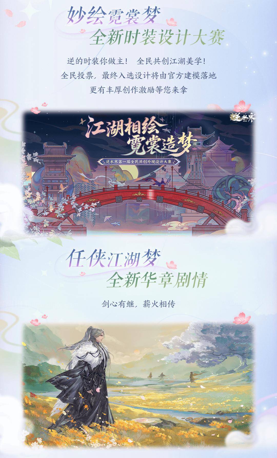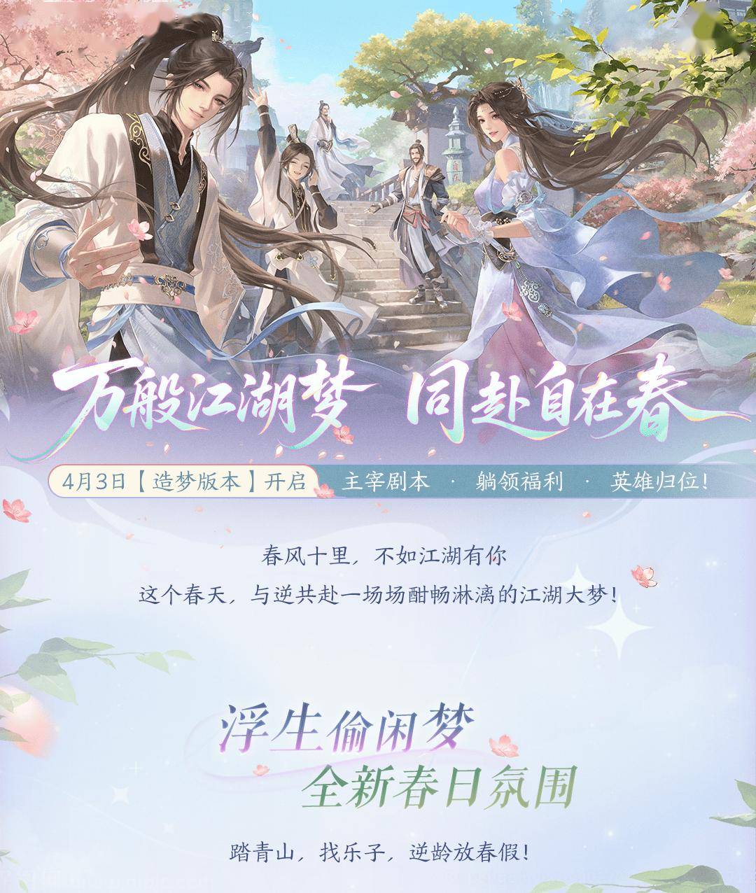 在全新造梦版本中,游戏将迎来多项春日趣味交互,包括画鬼脸、送簪花,还有春日新江湖任务、全新 AI 造梦模式、全新时装设计大赛、全新华章剧情、全新寻境剧情。