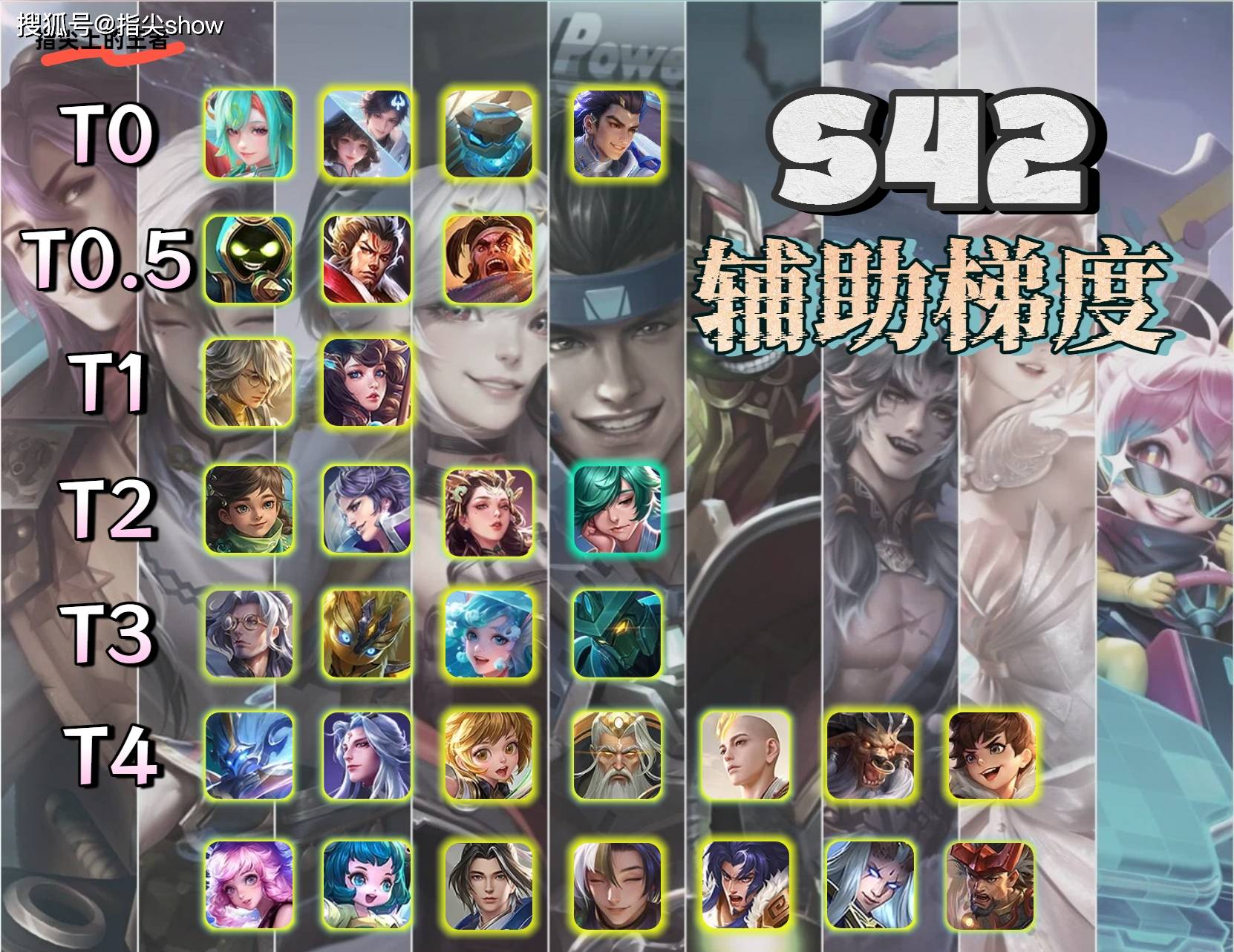 大家好我是指尖,S42赛季的英雄梯度,已经完成了对抗路、中路、发育路和打野职业,本文将是本赛季最后一期英雄梯度,辅助篇。