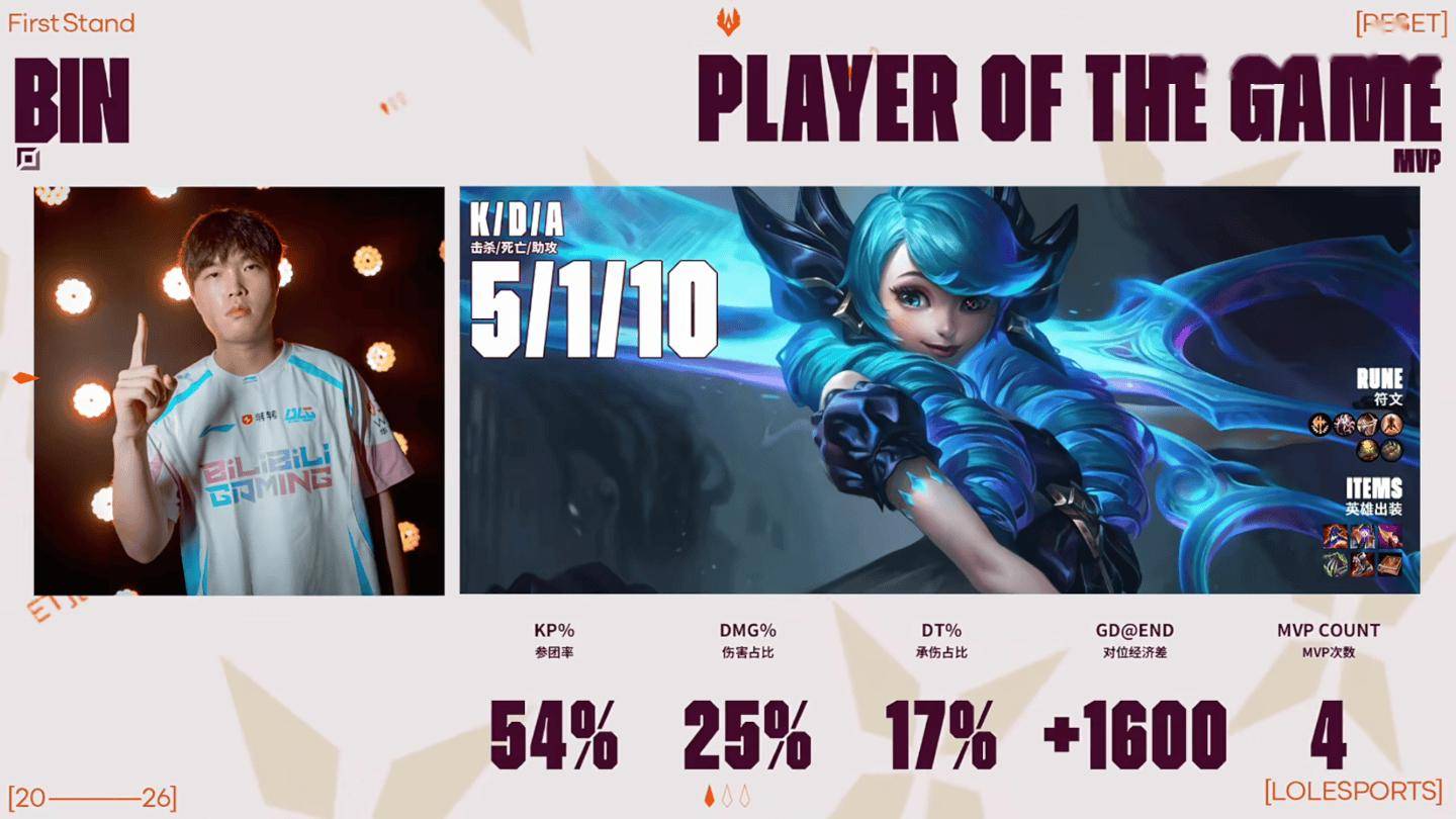 15 分钟,Bin 格温一打三留人,ON 慎关键 E 嘲住妖姬,BLG 完成零换三。