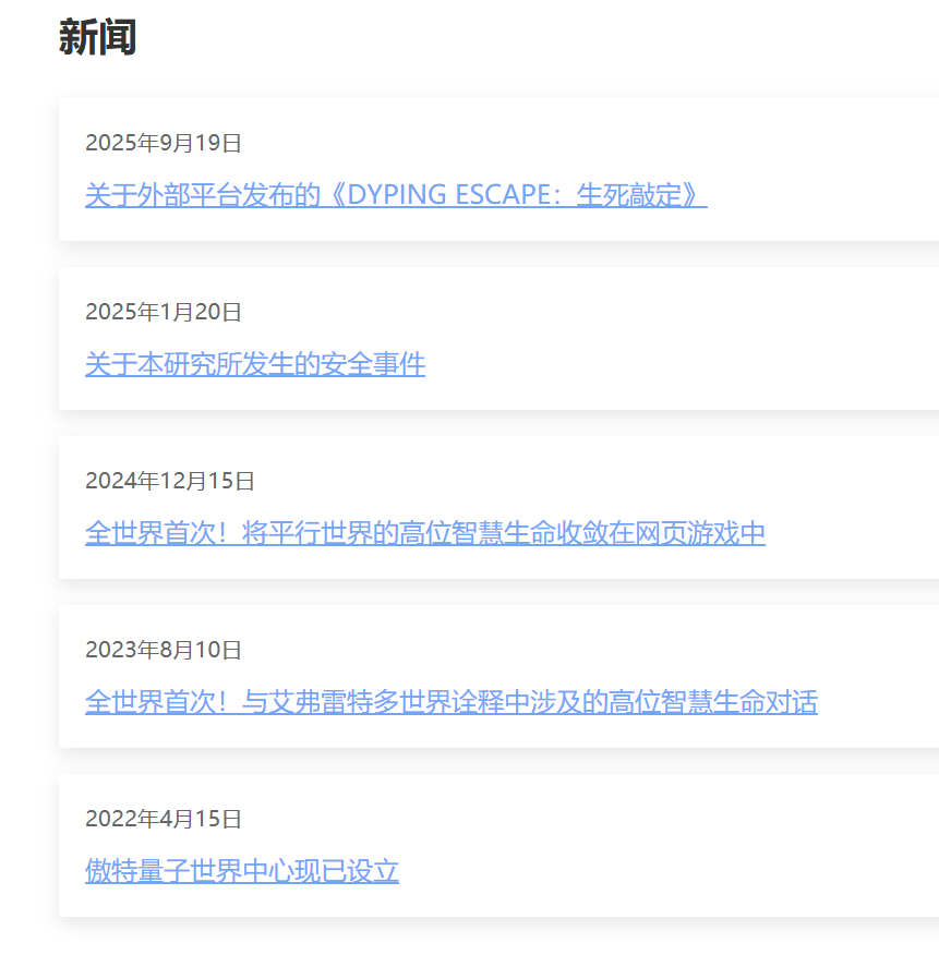 玩家会被指引到一个外部网站链接,在网页中,除了获取最终真相的“密码”以外,游戏把Meta和ARG形式也进行了结合。玩家可以看到作者编排的新闻内容,以及“量子世界中心”的设定说明。