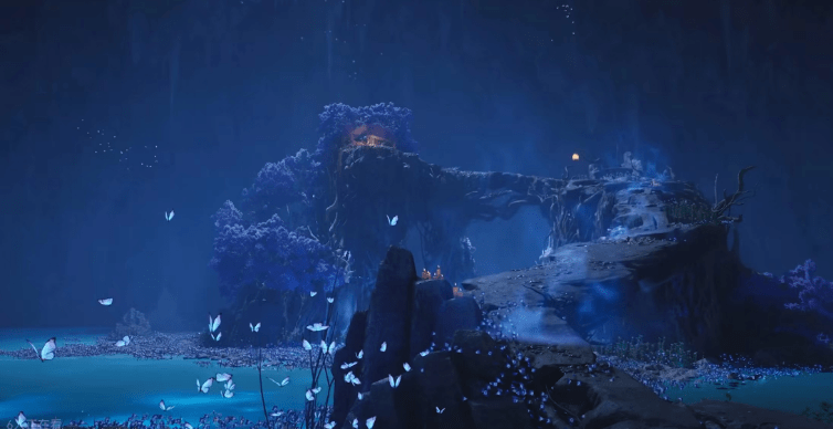当然地下世界也别有洞天。在主线任务中,玩家们会来到一个洞窟内寻找歌声的来源。洞穴的萤光晖夜景色给人一种幻境的感觉,其中的萤火虫点缀着洞穴的黑暗,为整个场景增添了一丝神秘。这些闪烁的光点在洞穴的壁画上投下斑驳的光影,仿佛在述说着古老的故事。与此同时,远处传来的呦呦鹿鸣声清脆而悦耳,如同天籁之音在洞穴中回荡。这般场景让人非常陶醉。