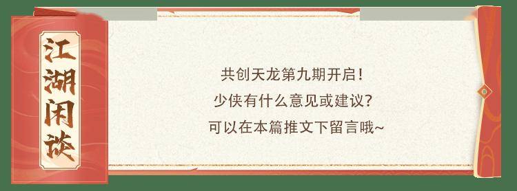 要记得,天龙江湖属于每一位少侠。你每提一条建议,都是在为自己所处的江湖添砖加瓦,让这片我们共同热爱的天地,变得更合心意。