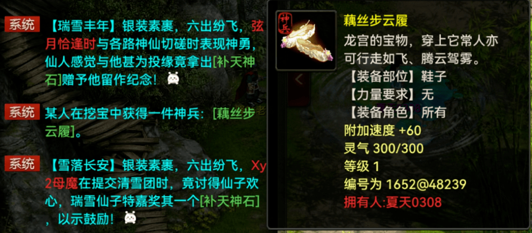 2、报!一位来自新区苍山负雪的玩家通过点卡寄售积分抽出了一只神兽浪淘沙,有此神兽,想必在新区升级更加轻松自如。