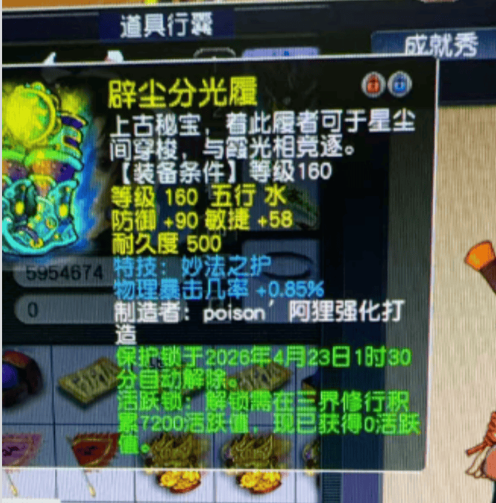 今天凌晨,一名老板通过鉴定160级装备,幸运地炸出一双带有两条高端蓝字的鞋子,分别为妙法特技和物暴几率0.85%。妙法用于提升法防抗性,而物暴则强化物理系输出,两者显得格格不入。