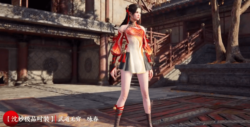 以近年知名度较高的咏春为例,咏春拳发源于我国东南地区,游戏中为了契合这一背景选取了设定上出生于东南沿海地区的角色沈妙为联动角色,以东南地区特有的丹霞地貌为主题,设计了专属的角色皮肤。