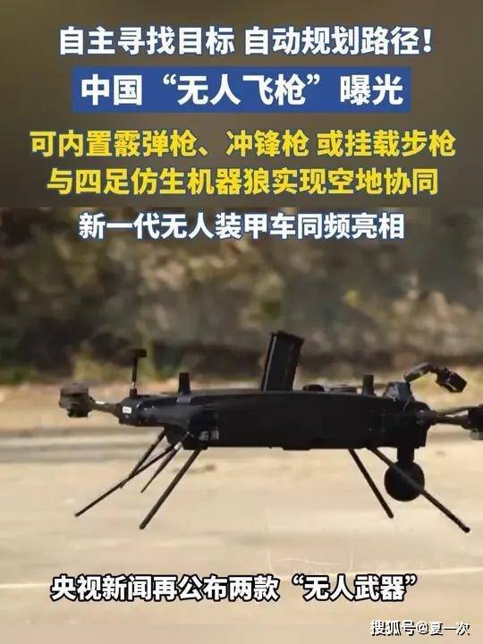 日前,我国自主研制的无人飞枪首次和四足仿生机器狼进行空地协同演练。无人飞枪不是简单无人机加枪,它通过火控和飞控联动融合,实现跟踪、瞄准,在实战中能够快速进行展开,自主寻找目标,自动规划路径。