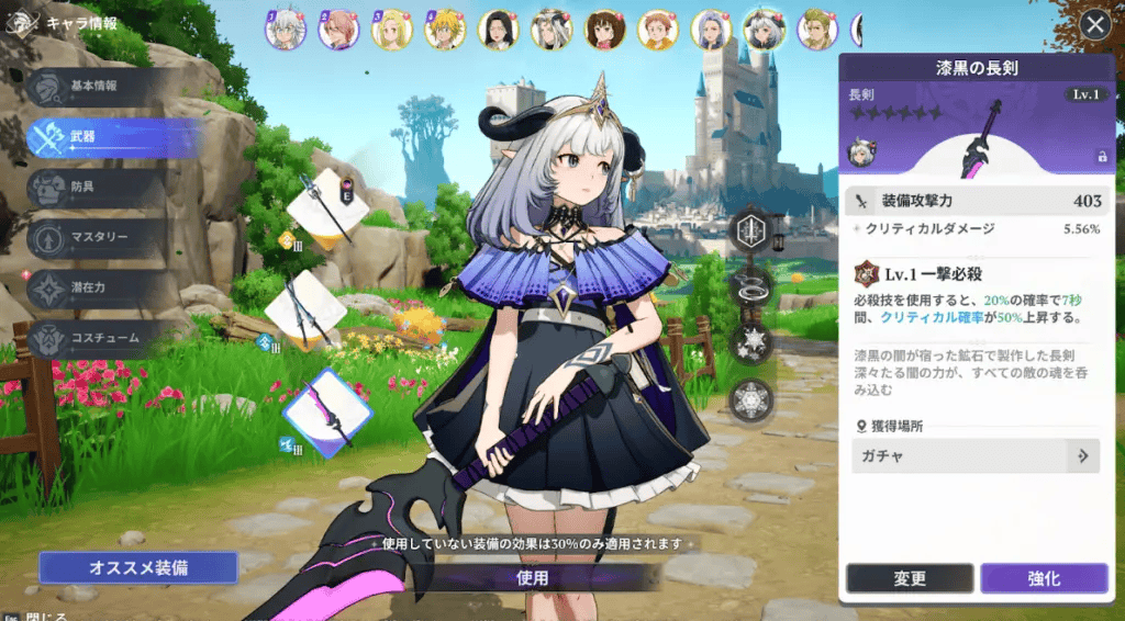 简单来说,这款游戏走的是传统日式手游的“武器+属性”路线,每个角色配备1个被动技能、2个主动技能和1个大招,操作上有小范围的动作设计,比如普攻有小连击和跳劈。