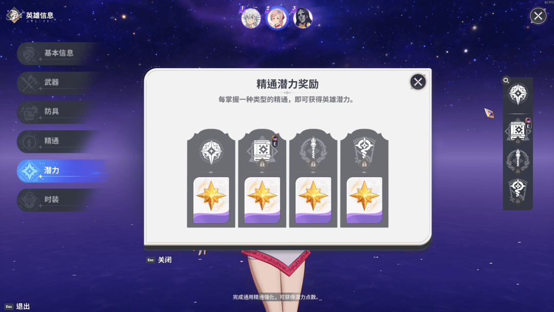 并且“通用+三种武器”精通点满以后,会返还4个潜力点,用来突破角色潜力,潜力阶段相当于重复卡突破,满级10级。乍看要吃10张同名卡 (实际6张),也是很多玩家进游戏就被劝退的关键点。