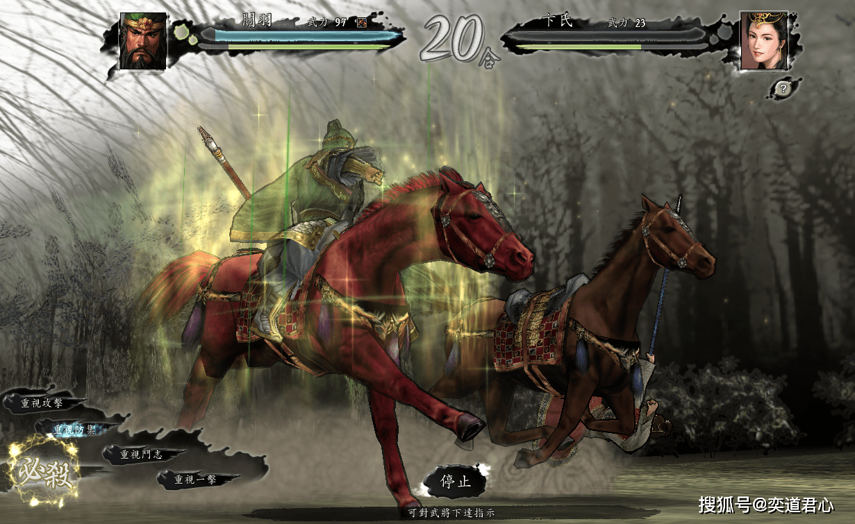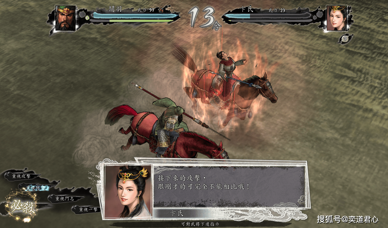 到了将近20个回合的时候,关羽才彻底失去了耐心,随手几刀下去,卞夫人就坠马了。这场三国志11游戏里的超级闹剧,以卞夫人的乖乖就缚而收场,不知道曹操看到这一幕会是什么感想,反正我是觉得,这应该也能算得上女中豪杰吧!毕竟打不打得过是技术问题,敢不敢打是态度问题,卞夫人对丈夫曹操那一份的心意咱是真的领会了。