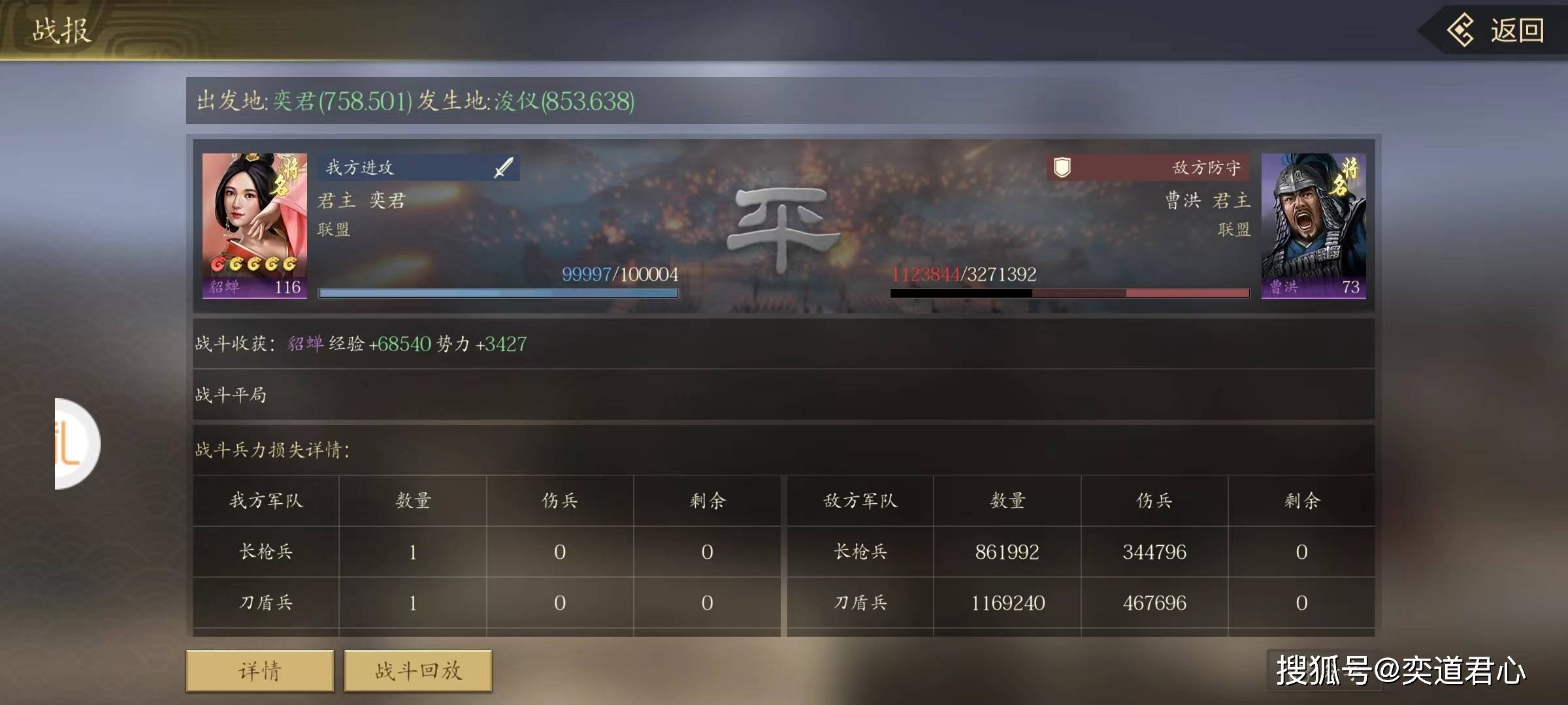 所以,我只能说这一期的内容完全是个意外加奇迹。就因为敲了个太鼓台,把单挑成功率做了20%的兜底,我用关羽随手一撩,还竟然真的让曹操的老婆卞夫人出阵迎战了。卞夫人的队伍里就只有她自己,我实在想不明白,她的勇气究竟是来自于哪里。