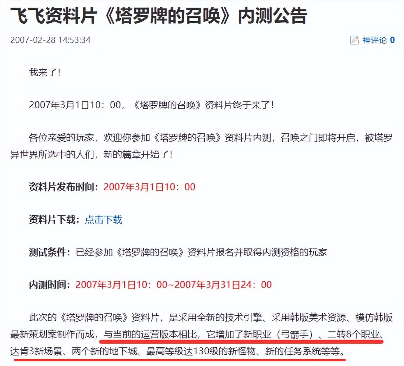 直到2007年3月,飞飞官方主页终于更新《飞飞资料片<塔罗牌的召唤>内测公告》,于是《飞飞》便成了网游历史上第一款公测了2年又搞内测的游戏。