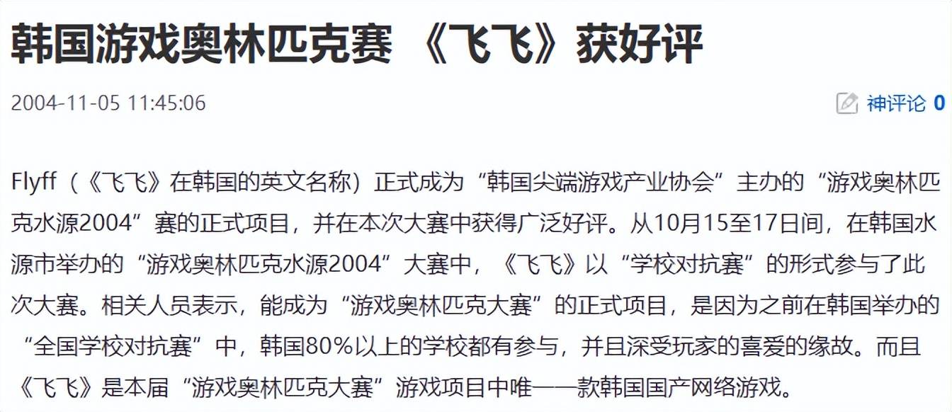 凭借创新的全3D自由飞行玩法,《飞飞》尚未正式上线便收获业界认可,2004年6月被韩国文化观光部授予当月最佳游戏,后续还入选 “游戏奥林匹克水源2004” 正式项目,被韩国官方列为文化输出标杆,随后出海世界各个地区。