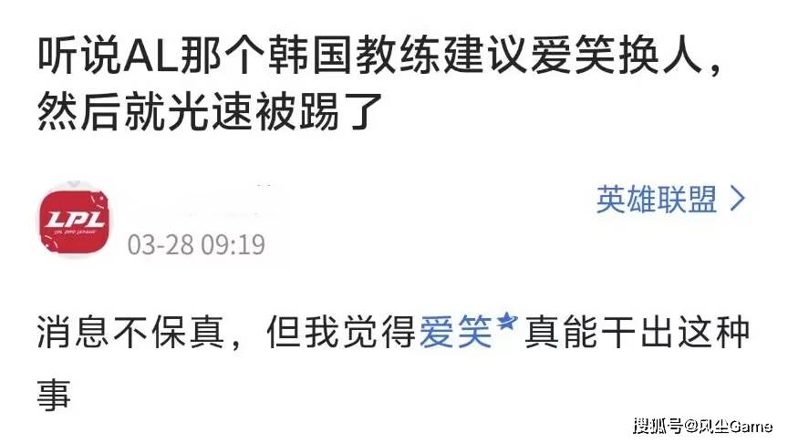 爆料人称,Helper打完季后赛,就跟管理层提议换选手,结果被拒绝了,他自己也因为这个提议,被爱笑给开了,如果没记错的话,Tabe走的时候也有类似的传闻,估计两位教练,都觉得AL上限太低,不换人很难在成绩上有突破,才提出这种建议,但没想到,爱笑直接选择死保选手。