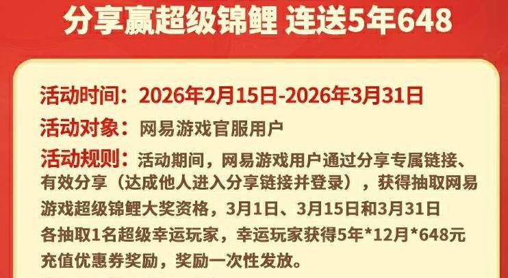 但动心归动心,这套时装直售价是2880纹玉,虽说能用限定纹玉、代金券、半价券这些道具,但七七八八算下来,对于很多玩家来说,依然是一笔需要掂量掂量的开销。别急,网易游戏的“新春开运补贴”活动正火热进行中,这才是真正的省米关键。只要你抓住这个机会,可以省下一笔甚至直接白嫖。