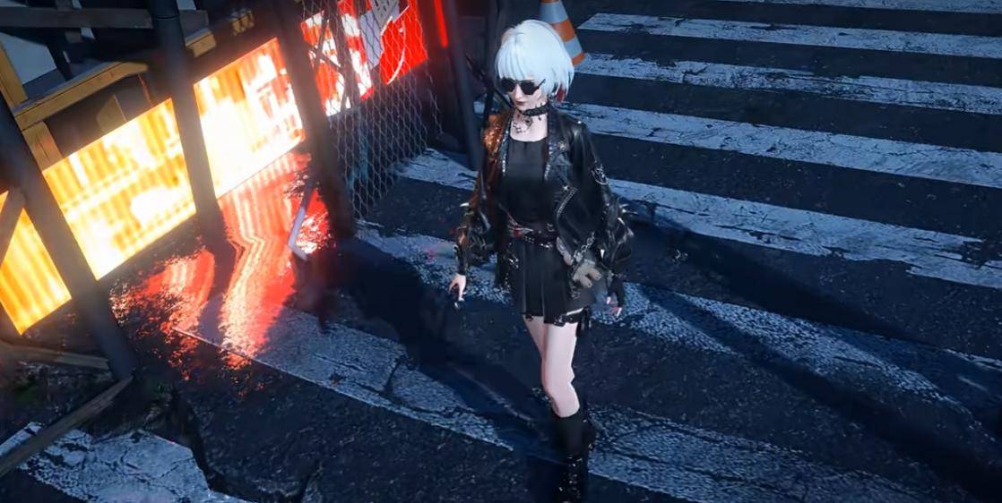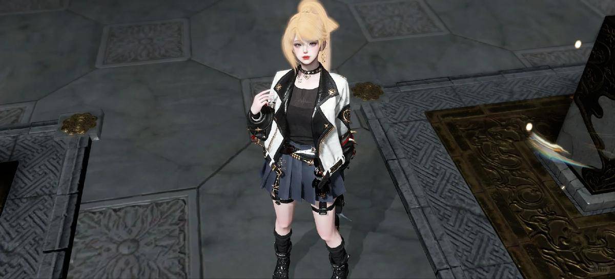 先来看看女装“寐影渡生”,利落的齐刘海短发搭配亮面皮质外套,铆钉和金属配饰这些小细节,把那种锋芒内敛的劲儿拿捏得恰到好处,本以为就是纯纯的酷姐路线,结果下身配了条百褶短裙,显得俏皮灵动。