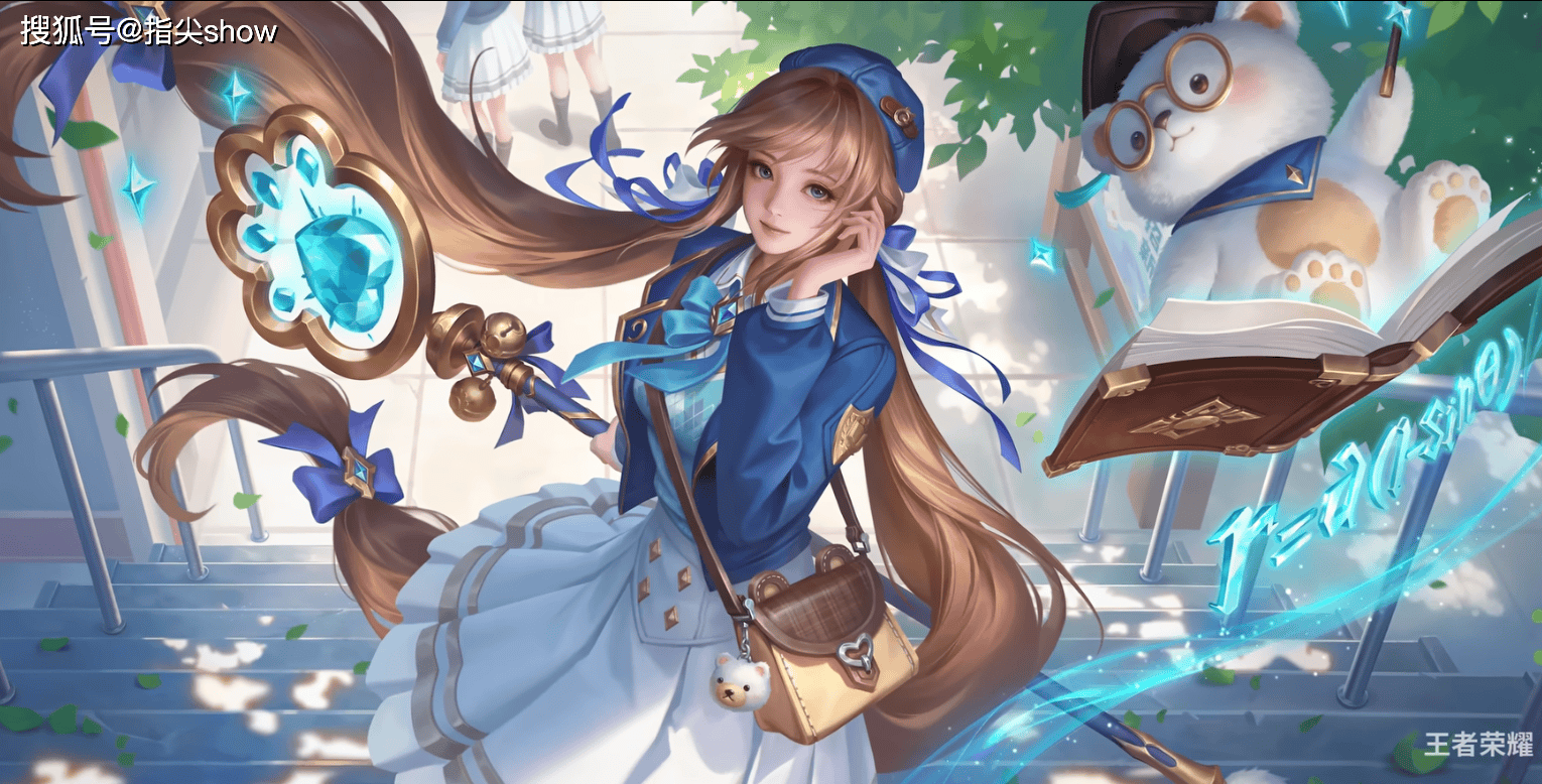 法杖头是凶爪的造型,一只可爱的小熊坐在书上,平添了一些萌意,和大乔身上的小熊挎包呼应。