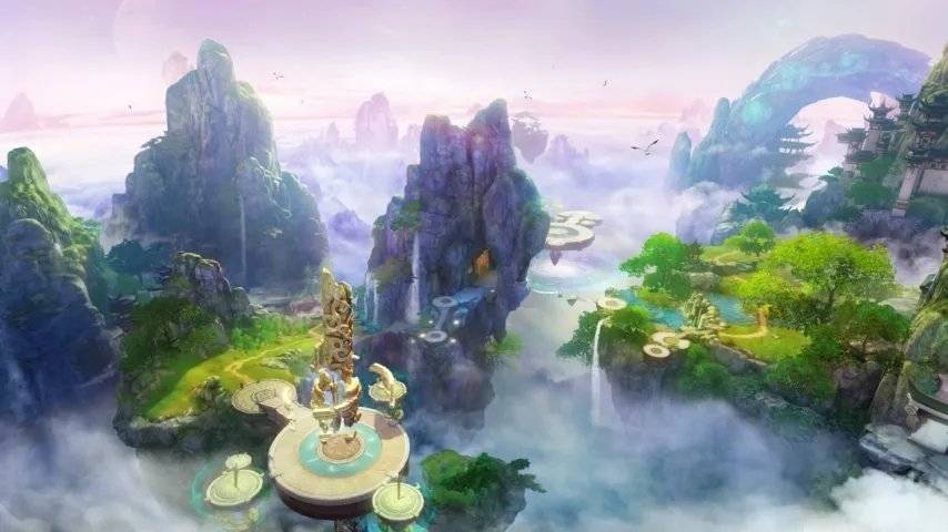 走在竹林里,是清越的竹笛配轻柔的电子音,透着江南的温婉;打团战的时候,鼓点和电音交织,瞬间燃起热血;飞在云端时,空灵的弦乐裹着风声,让人仿佛置身仙境。