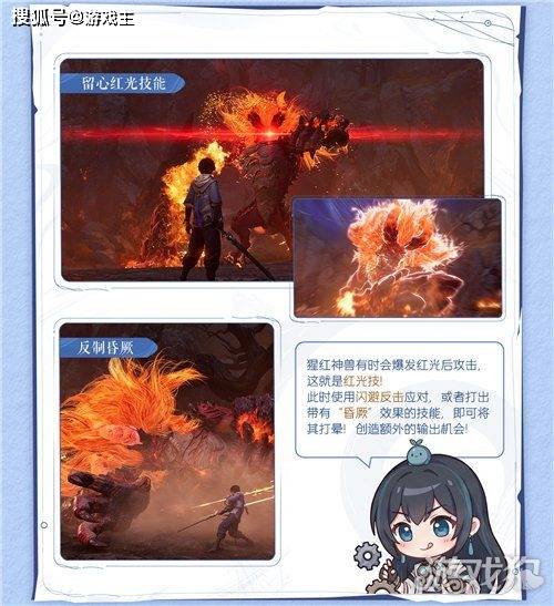 猩红神兽有时会爆发红光后攻击,这就是红光技。此时使用闪避反击应对,或者打出带有“昏厥”效果的技能,即可将其打晕!创造额外的输出机会。