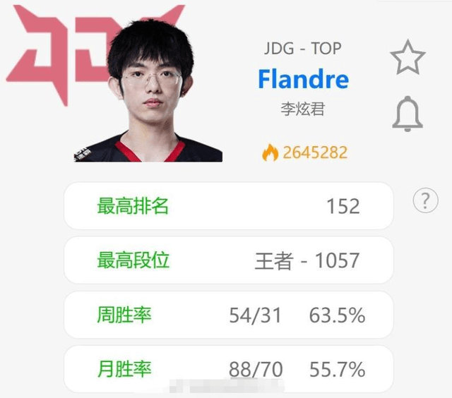 JDG正式官宣圣枪哥Flandre加入后,最近一段时间他也是非常努力,韩服排位可以查到圣枪哥近期一直在高强度排位,以尽可能找回自己的竞技状态。在一波连胜过后,距离官宣过去仅一周时间的圣枪哥已经冲上了韩服千分王者,这让很多粉丝、观众乃至于圣枪哥的老队友都感到“不可思议”。