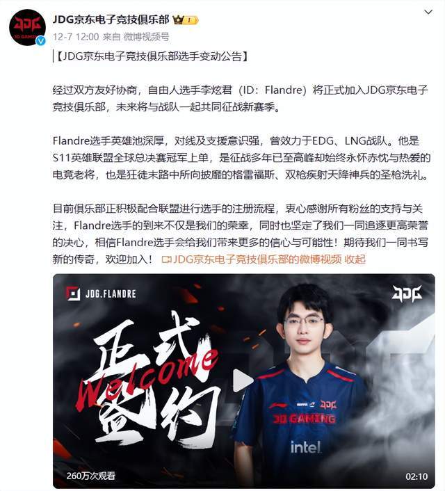 随着今年LPL转会期结束,大部分战队的阵容都有所调整,哪怕是今年出征世界赛的四支LPL队伍,阵容方面也有着一些细微的变动。而JDG作为过去一个赛季LPL成绩最好、统治力最强的队伍,虽然他们在这次转会期损失了369和Knight两员大将,队伍的主教练Homme也选择暂时休息离开赛场一段时间,但是重组了教练团队并且上中两个位置也都引入强援的情况下,新赛季JDG无疑还是非常有竞争力的队伍。