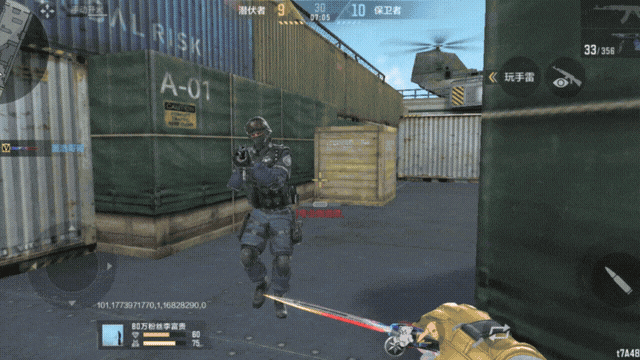 同样这里来看一下这个特殊循环转刀动画。进入对局后,长按检视键,人物会用食指抵住刀柄中央,刀身便开始旋转——而且是一直转、不停转!活脱脱就是一位玩刀高手在炫技,设计实在亮眼,而且只需点击其他按钮,动作便会即时停止。