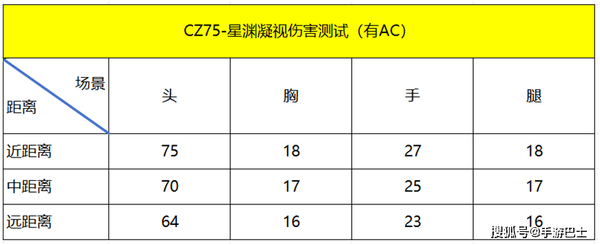 同时也对上述武器进行是伤害测试,CZ75-星渊凝视呈现出来的特点就是近、中距离伤害强势,中距离打中头部的伤害有70点,配合不俗的射速,适合比较依赖强火力的玩法,测试详情如下图: