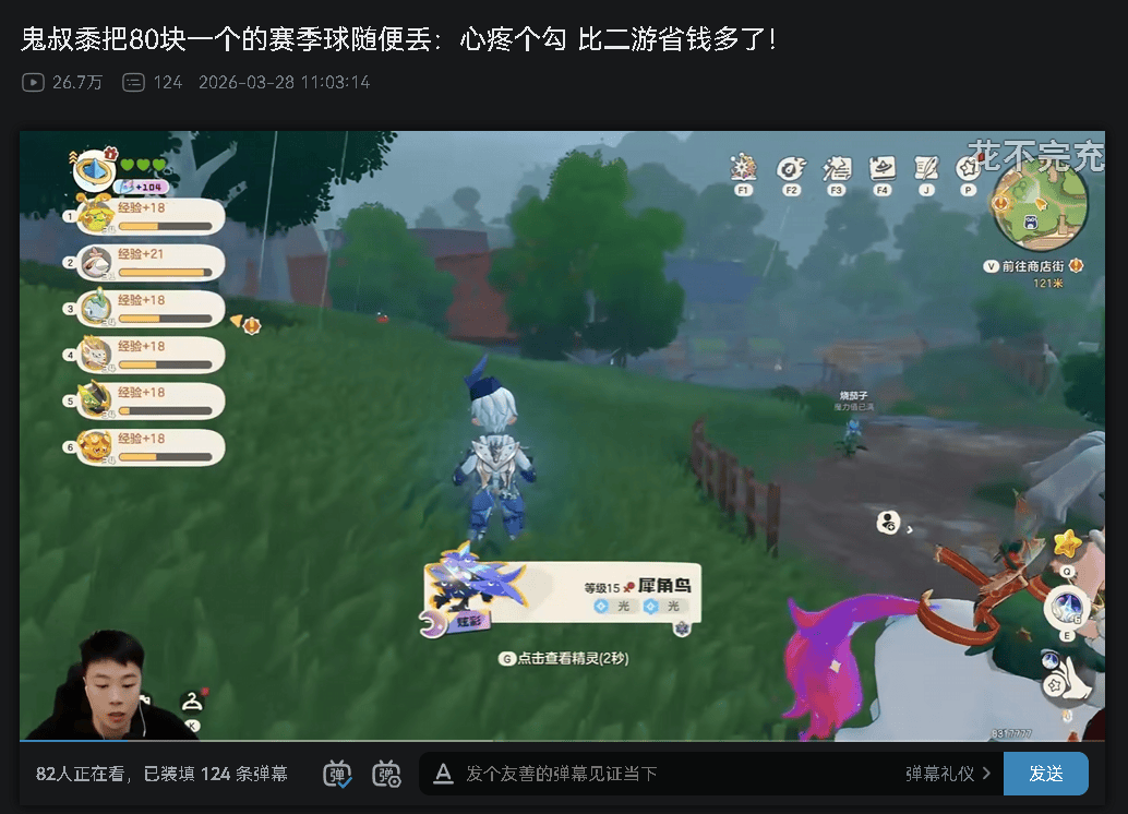比如知名游戏主播@鬼叔黍 在玩的时候,就直接把80块一个的赛季炫彩球当普通球来丢,看得观众眼睛都直了。结果他怎么说呢,他说「居然才80吗?这已经比二游省很多钱了」。