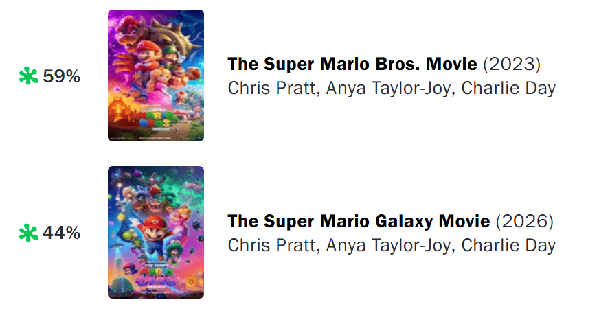 今天是《超级马力欧银河大电影》在北美上映的日子。仅以目前的开局而言,该作的反响明显不如2023年上映的前一部马力欧大电影,烂番茄指数44%,MC媒体评分更是只有37分。