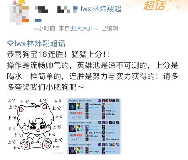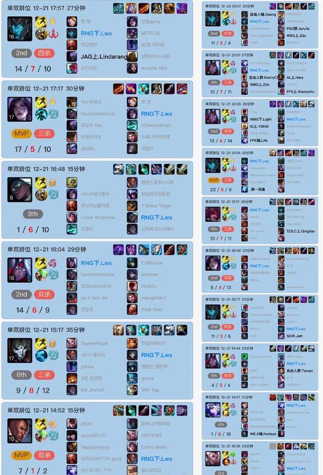 近日有网友发现,近日在韩服排位中,LWX选手在韩服排位Rank中怒斩16连胜!