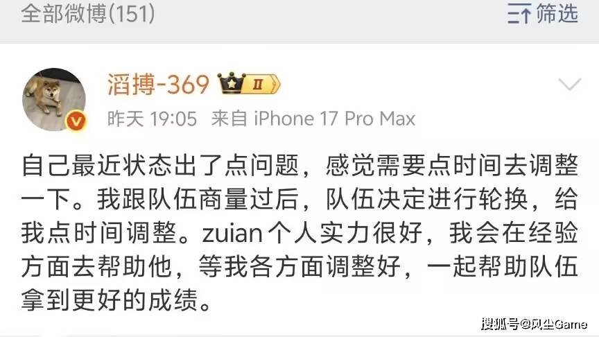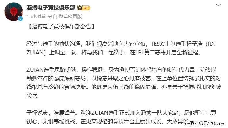 LPL第二赛段,再有2天就正式开赛了,要打响揭幕战的滔搏战队,近日突发变动,上路369选手近日发文,他自称状态出了点问题,要休息一段时间调整一下,看来之前跑路的消息,确实是真的,管理层也有劝他,但人回来了,心还没回来,滔搏只能上调二队上单Zuian,临时顶替369。