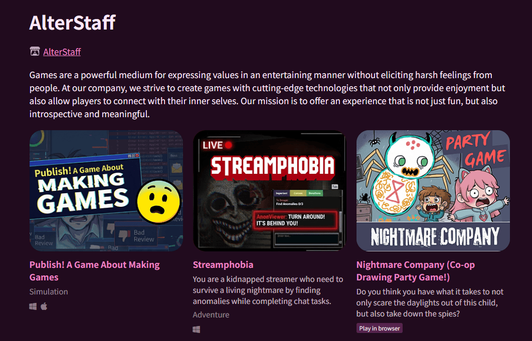 我们现在做的新项目,核心其实也是围绕“联系”来展开。什么样的玩法,能让玩家和这些智能体产生更独特的联系?比如《Streamphobia》,是你和游戏中的AI观众的联系;吓小孩的画画游戏,是你和自己的作品、和那个AI小孩之间的联系;做游戏开发局模拟器,是你和老板、以及和其他玩家之间的联系。我们其实一直围绕“联系”这个方向在转。