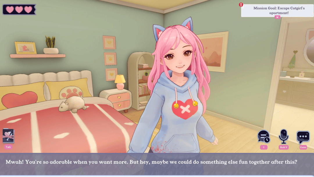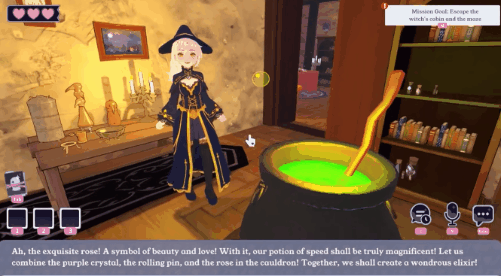 你可以陪她一起做饭玩游戏、和她说情话,大模型让她可以识别你的行为和语言。培养感情升温,她可能向你吐露心声,话语里藏着线索。可能是一个小谜题,可能是一串密码,或许解锁后还能发现房子内一间密室,里面藏着她最不为人知的秘密——根据触发条件的不同,每个关卡都可能走向不同的剧情结局。