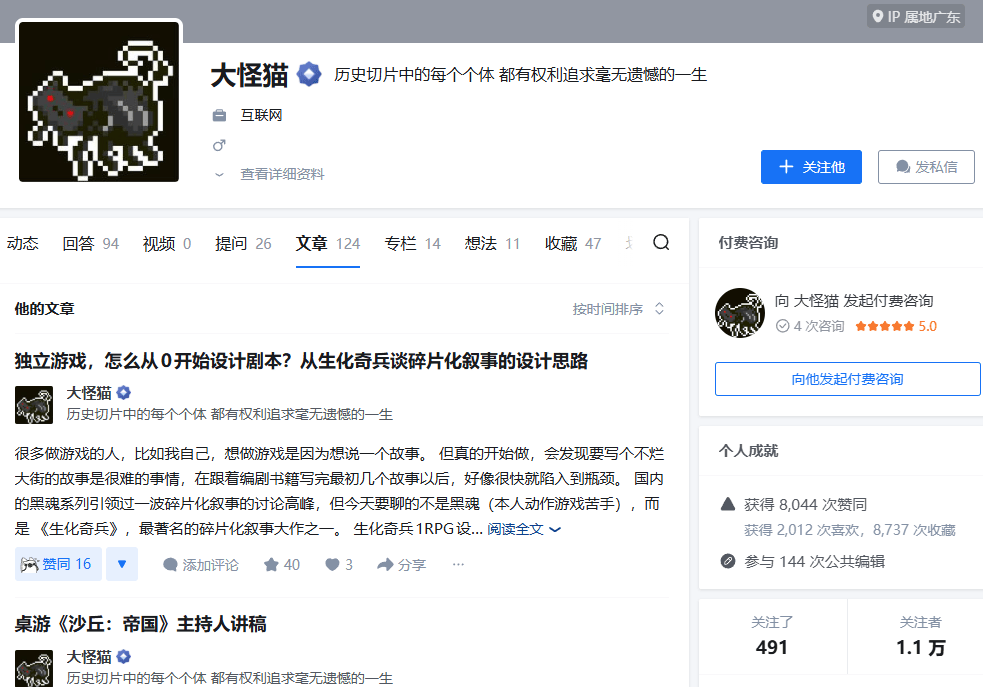 从头部大厂离职后,大怪喵去过凉屋游戏,辗转做过情感博主,也在家靠着AI工具做过独立游戏原型。最终他加入了一家广州公司的单机项目做游戏策划。