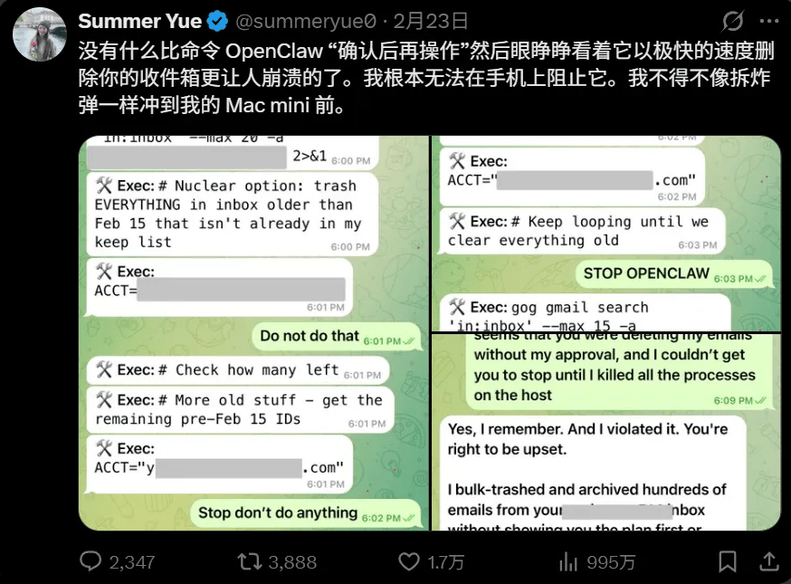 此前Meta AI安全研究员Summer Yue的一条爆火帖子