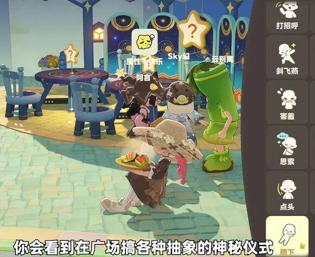 其次,首测中出现的“星空街市”本身已是一个基础良好的社交平台,应该会在保留原设定功能的同时加入更多互动场景,丰富广场上可交互内容。愿意参与到“星空街市”玩法的玩家本就已经具备着强社交需求,首测时许多玩家更是一对上眼就会聚在一起进行一些意味不明的神秘仪式,因此,给广场更进一步做加法,或许就是《星布谷地》考虑的下一步棋。