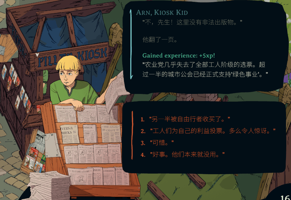 茶馆爆炸案与选举,构成了游戏中一明一暗的两条主线。诺维克城内势力交织,玩家需要与大量NPC及可交互物件互动。在与他们交谈的过程中,玩家也需要做出符合自己内心的选择,这既包含对于阵营的倾向,也包括自己身份的认知思考——你是否认为自己是一个普通的牧师。