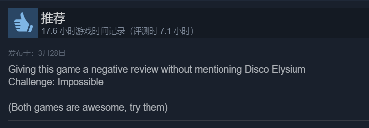“挑战在给游戏差评的同时不提到《极乐迪斯科》:不可能”