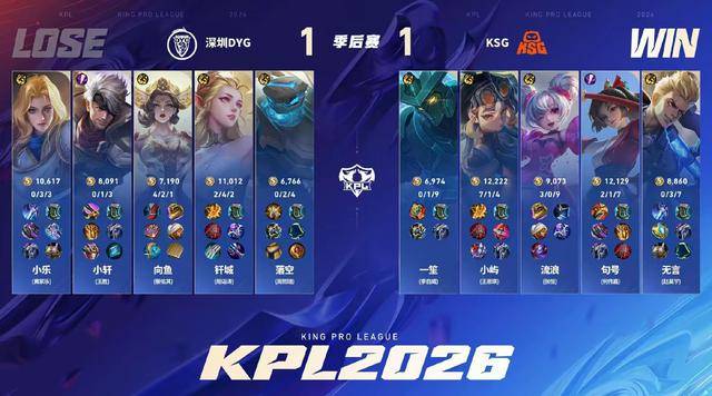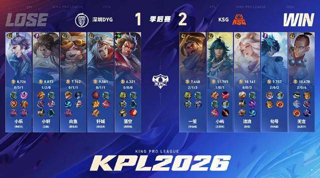 后期KSG又在DYG红区抓住白起,白起回头嘲讽到守约,但伤害根本不够,自己还是倒了。马超绕后被沈梦溪控了一下,只戳了两枪就被杨戬拿下人头,KSG进入赛点。