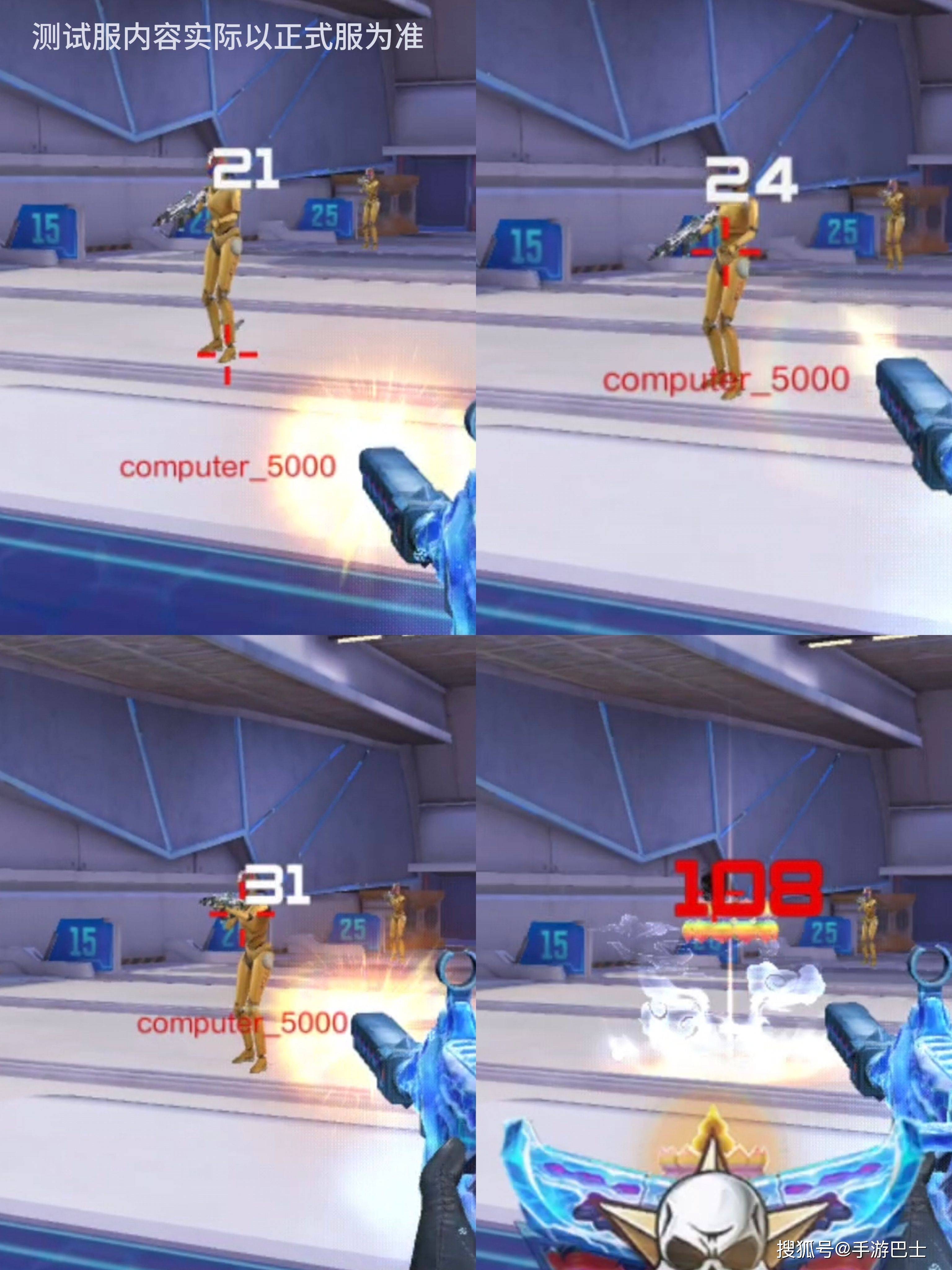 我们将王者白虎和SCAR-流光彩莲在体验服中进行伤害测试,同等距离下,王者白虎的腿部伤害为21,上半身伤害为24,手部伤害为31,爆头伤害为105。