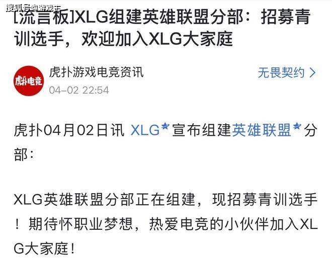 大家好,S16赛季的比赛已经正式开始了,相信绝大多数的玩家都关注了最近一段时间的对抗,各大赛区的比赛都已经陆续展开。Lpl赛区虽然是线上的选拔赛,但热度也是非常不错的。Blg战队拿到了第一赛段的冠军之后,确实帮助lpl赛区提升了一些人气,很多的老选手老玩家也都在陆续回归。谁也没想到,竟然lpl赛区还有新的俱乐部加入,很多网友也是纷纷调侃,是谁家这么强啊,居然敢去投资夕阳产业。XLG官宣组建英雄联盟分部,并且招募青训选手,年龄是06年以后。
