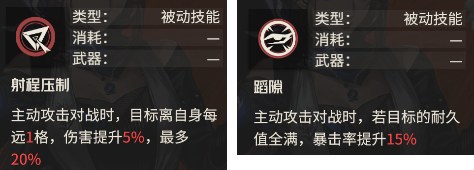 接着西尔维娅的技能我们一般会考虑一个主输出技能+【射程压制】+【蹈隙】两个被动,接着这两个被动技能维一需要补充一点细节: