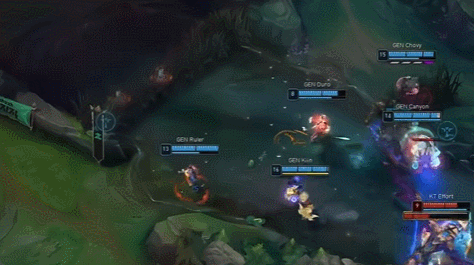 本局双方只要进入团战,Ruler的女警就是没有任何生存空间,当然GEN这边也在突后排打,只是效果远不如KT,Ruler女警大量阵亡,Kiin狼母状态不佳,Chovy选出安妮后依然存在感极低,最终被KT一波团战胜利带走比赛。