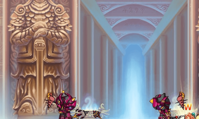 6、罗宣:火龙岛的三个柱子上的宝石需由蓝色变成红色,即可挑战罗宣。同样,您还可以通过在第一幅图的二段跳到达顶部,并依次向左释放阴阳斩龙剑两次,迅速进入罗宣场景。