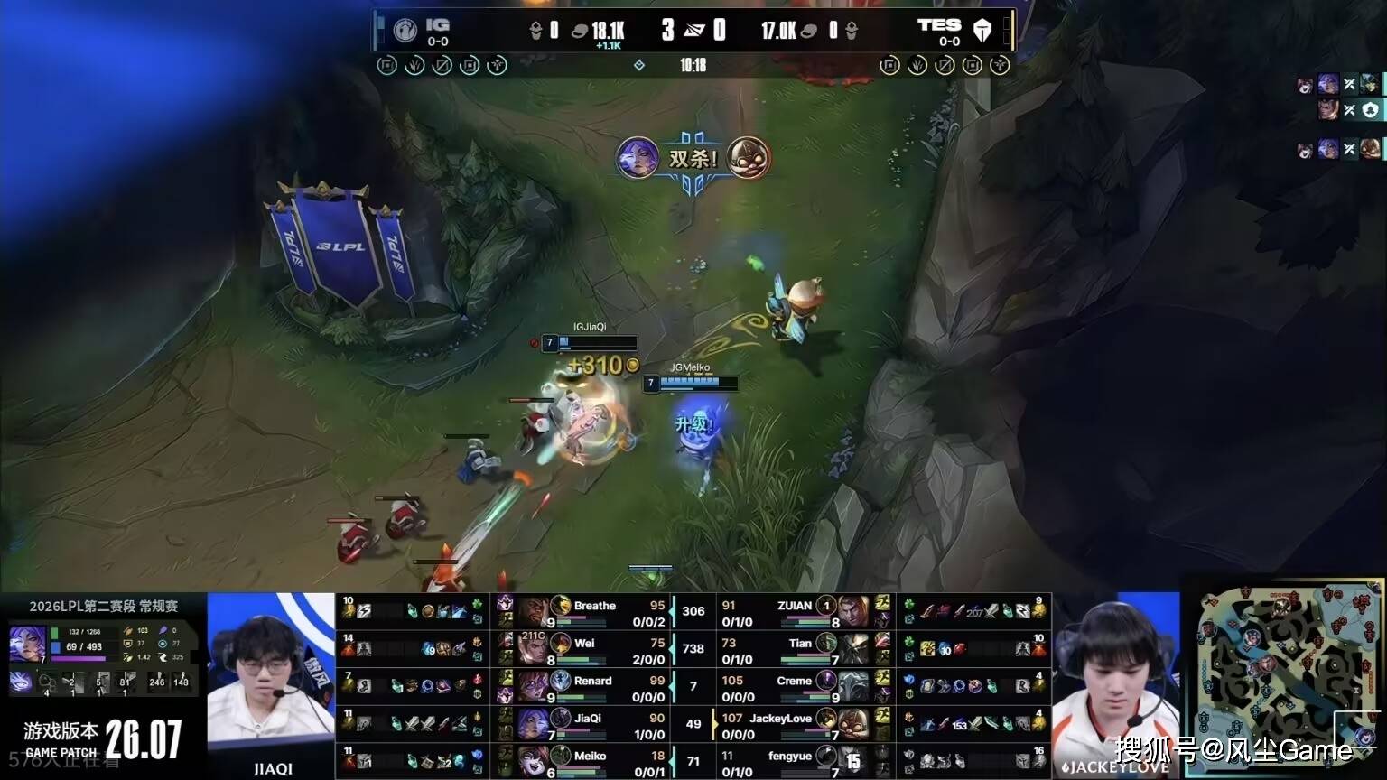 第二把是IG的碾压局,Wei前期在上路打出击杀,同时下路Jiaqi和Meiko发力,对线完成双杀,被自己取代的选手线杀,哥哥这波真有点拉胯了,全线优势的IG,短短15分钟,就打出了6K的经济差,撑了25分钟,滔搏遗憾落败,哥哥这局,比上把还夸张,战绩还是0-6,一个助攻都没混到。