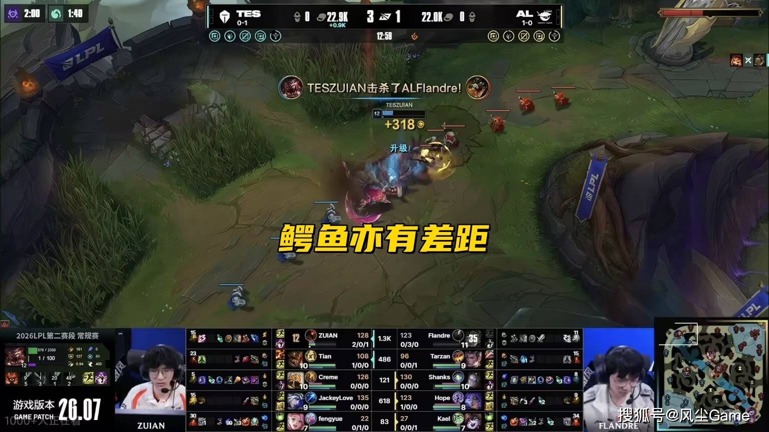 对线狂压40多刀,遭到对面打野GANK的时候,Bin甚至1打2双杀,期间还扛了一下塔,这种表现的鳄鱼,比赛里已经很久没看到过了,最离谱的是,打到40多分钟,鳄鱼团战依旧很有用,Bin大哥给人感觉,不像是在打比赛,更像排位里炸鱼,对比之下,AL圣枪哥的鳄鱼,就有点下饭了。