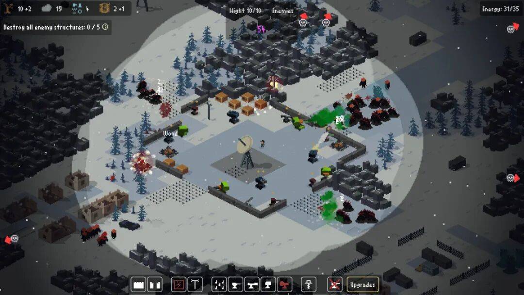 在这款极简生存策略游戏中,守住你的基地,抵御每个夜晚愈发危险的一波波敌人的进攻。开采资源,建造并修复防御设施,升级你的建筑、工具和能力,在这个残酷的世界中生存下去。