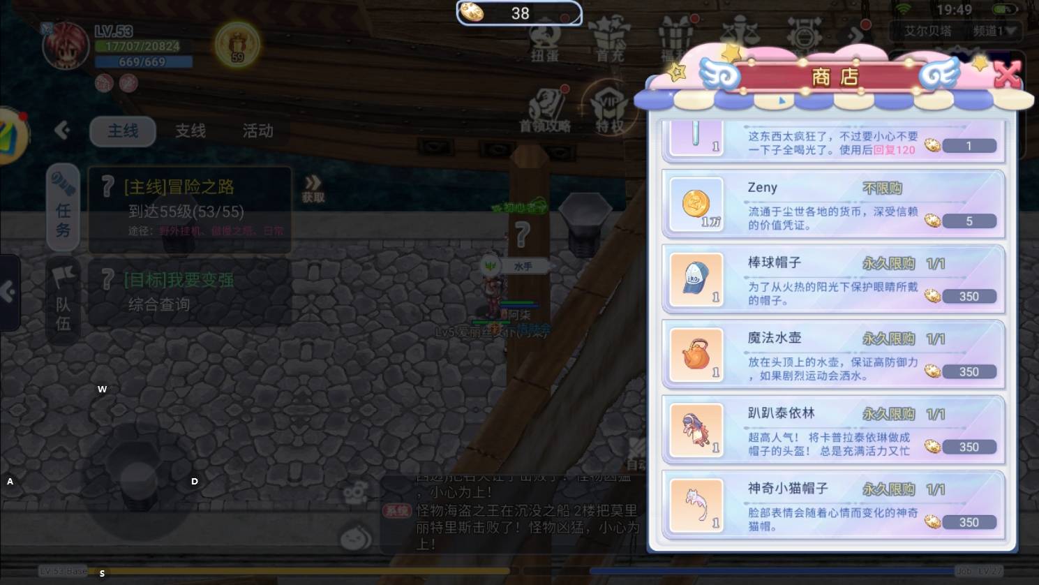 在《仙境传说》手游中,完成日常、可获得「日常币」,日常币有专属商店,内含实用好物:「疯狂治愈药剂」、「疯狂充能药剂」、「Zeny」,以及四款时装头饰(上):「棒球帽子」、「魔法水壶」、「趴趴泰依林」、「神奇小猫帽子」