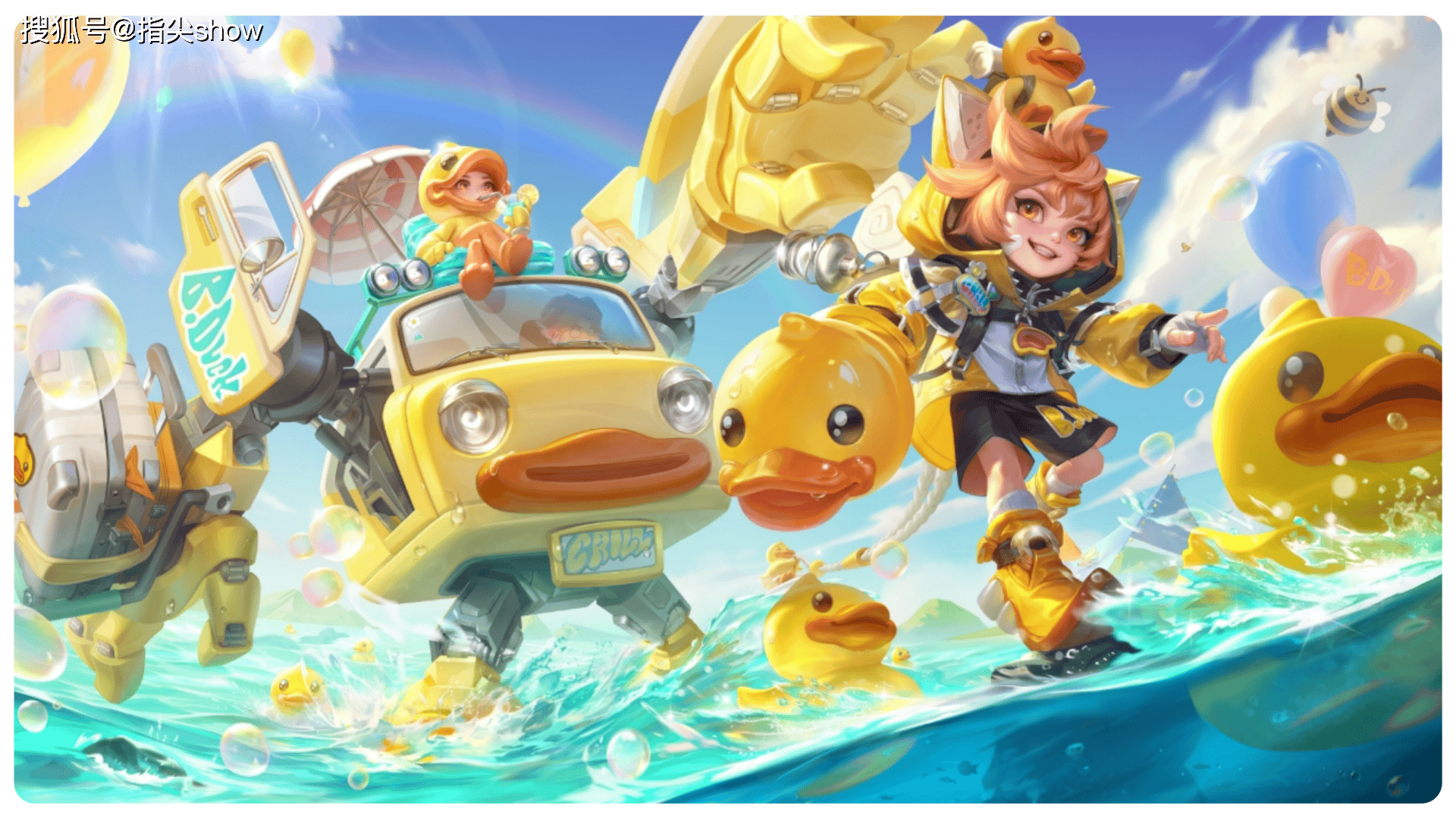 刘禅的鸭鸭历险记皮肤联动的是小黄鸭+露营的元素,很清爽的风格,看着就很舒服。